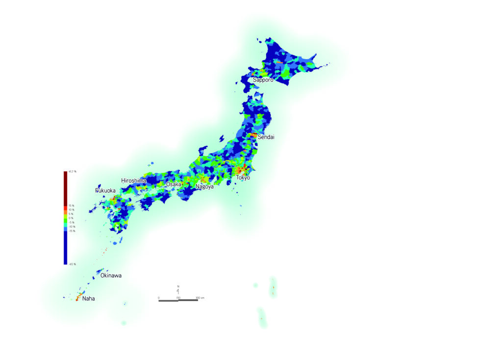 Les territoires ruraux et les villes moyennes n’arrivent plus à faire venir et à garder des jeunes ménages – avec ou sans enfants – dans des proportions suffisantes pour entraîner un renouvellement générationnel. Dans ces espaces, on observe une massification de la vacance résidentielle structurelle, qui touche notamment des logements individuels ou en petit collectif en propriété privée. Le taux de vacance à l’échelle nationale s’élève en 2023 à près de 14 % (contre 8,2 % en France à la même date selon l’Insee), soit près de 9 millions d’unités de logement non occupées, ce qui n’est pas incompatible avec une poursuite de la construction de logements neufs répondant aux normes sismiques et adaptés à la réduction de la taille moyenne des ménages. Au Japon, du fait des normes antisismiques, les maisons édifiées depuis les années 1950 ont une durée de vie moyenne de 40 ans. On lègue avant tout à ses héritiers un terrain à usage résidentiel que l’on peut détruire et reconstruire afin que ces derniers habitent dans des constructions actualisées ; ou bien les parcelles sont vendues à des tiers. Avec l’affaiblissement du renouvellement sociodémographique de nombreux quartiers urbains et périurbains, surtout dans les agglomérations moyennes, les biens non entretenus car non transmis se multiplient.